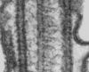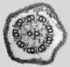 Abb. 5 und 6: Quer- (links) und Längsschnitt eines Axonems im elektronenmikroskopischen Foto.