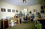 Das änderte sich in dem Moment, in dem ich das Haus betrat und sein Innenleben sowie seine Bewohner kennenlernte. Als erstes fielen mir die gemütlich eingerichteten Arbeitsräume auf, die nichts von kalter Technik spüren ließen, obgleich natürlich die zu erwartenden technischen Gerätschaften vorhanden waren: verschiedene Rechner, Scanner und Drucker, eine Videoaufzeichnungsanlage und dazu ein komplettes Fotolabor.