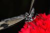 Dort, wo ich die Schmetterlinge fotografiere, ist es erlaubt, zu blitzen. Daher mache ich die Aufnahmen mit meinem Makroblitz. Da die notwendige Lichtmenge durch die TTL-Blitzmessung vom Blitz automatisch gesteuert wird, nutze ich die Gelegenheit, im manuellen Belichtungsmodus zu arbeiten. So kann ich sowohl die gewünschte Verschlusszeit/Blende-Kombination als auch den ISO-Wert frei einstellen. Da man bei der Makrofotografie ja nah genug am Motiv ist, stört die geringe Reichweite des Blitzes nicht. Das Motiv wird in jedem Fall korrekt ausgeleuchtet.